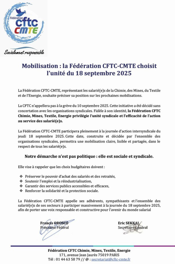 Pour plus d'informations ou pour toute question, n'hésitez pas à contacter la Fédération CFTC-CMTE.